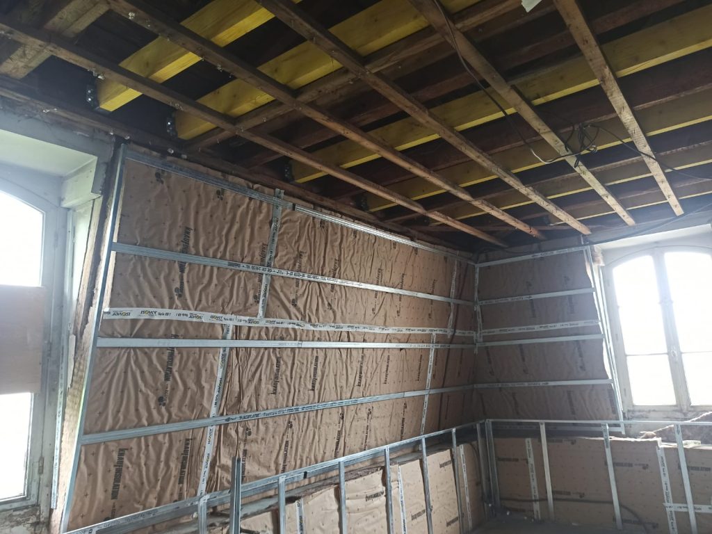- L’isolation par l’intérieur, qui consiste à poser des matériaux sur les murs ou sous les tuiles, on en injectant dans les combles de l’isolant floqué si ces combles ne sont pas aménagés